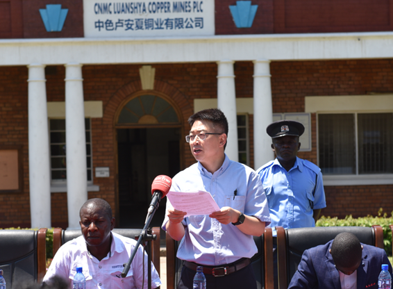 贊比亞當(dāng)?shù)貢r(shí)間2019年11月9日,一年一度的“盧安夏農(nóng)業(yè)物資捐贈(zèng)儀式”在中國有色集團(tuán)所屬中色盧安夏銅業(yè)有限公司(以下簡稱“中色盧安夏”)辦公樓前的廣場上舉行,盧安夏選區(qū)國會(huì)議員(MP)、盧安夏市市長、盧安夏地區(qū)專員(DC)、地區(qū)農(nóng)業(yè)協(xié)調(diào)官、盧安夏農(nóng)戶代表、中色盧安夏管理層、媒體記者等參加了捐贈(zèng)儀式。