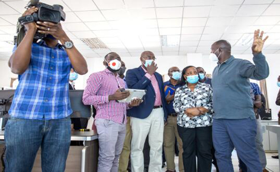 礦業(yè)部長(zhǎng)(右)主動(dòng)擔(dān)當(dāng)中色非礦數(shù)字化礦山現(xiàn)場(chǎng)解說員