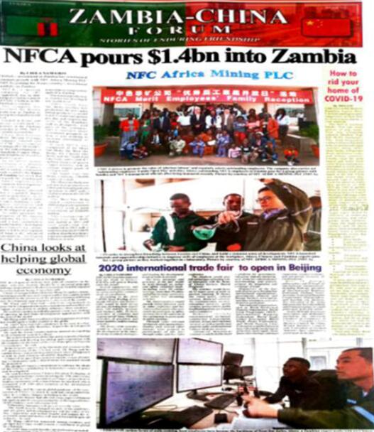 9月7日,贊比亞最有影響的媒體贊比亞時報印發(fā)“贊比亞-中國論壇:友誼歷久彌堅”特刊,講述中色非礦故事,稱頌中贊友誼,為2020中國國際服務(wù)貿(mào)易交易會在北京開幕點贊。