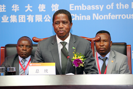 正在中國(guó)進(jìn)行國(guó)事訪問的贊比亞總統(tǒng)埃德加?倫古閣下出席了當(dāng)天的論壇。此次倫古總統(tǒng)是受習(xí)近平主席的邀請(qǐng)對(duì)中國(guó)進(jìn)行國(guó)事訪問的。此前,倫古總統(tǒng)出席了博鰲亞洲論壇2015年年會(huì)並與習(xí)近平主席進(jìn)行了會(huì)晤,達(dá)成了廣泛的共識(shí)。3月30日上午,倫古總統(tǒng)還在釣魚臺(tái)國(guó)賓館接見了羅濤總經(jīng)理等中國(guó)有色集團(tuán)負(fù)責(zé)人,勉勵(lì)中國(guó)有色集團(tuán)在贊比亞實(shí)現(xiàn)更好更快的發(fā)展。在熱烈的掌聲中,倫古總統(tǒng)發(fā)表了熱情洋溢的講話。他從歷史的維度、現(xiàn)實(shí)的角度充分闡述了鞏固和發(fā)展中贊傳統(tǒng)友誼的重大意義,表達(dá)了對(duì)中國(guó)企業(yè)推動(dòng)贊比亞經(jīng)濟(jì)社會(huì)發(fā)展的感激之情,特別強(qiáng)調(diào)中國(guó)有色集團(tuán)及其投資的合作區(qū)在贊比亞所作的重要貢獻(xiàn)。同時(shí),對(duì)合作區(qū)未來的發(fā)展寄予了殷切的期望,表示贊比亞政府將全力支持中國(guó)有色集團(tuán)在贊投資發(fā)展,為合作區(qū)的發(fā)展提供強(qiáng)有力的支持。他強(qiáng)調(diào),此次中國(guó)之行親眼見證了中國(guó)的進(jìn)步和發(fā)展,希望此次論壇能夠成為拓展中贊兩國(guó)友好合作的壹座橋梁,帶動(dòng)、引領(lǐng)更多中國(guó)企業(yè)到贊比亞投資興業(yè)。