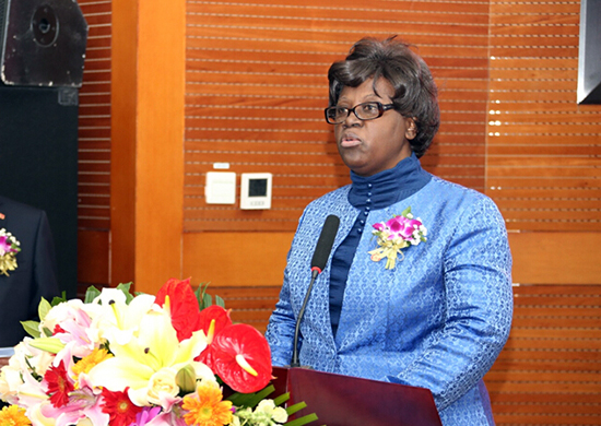 贊比亞駐中國(guó)大使姆瓦佩在論壇上致辭