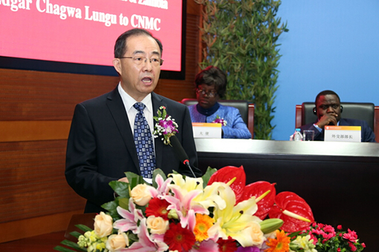 贊比亞商工貿(mào)部部長(zhǎng)姆瓦納卡特韋在論壇上致辭