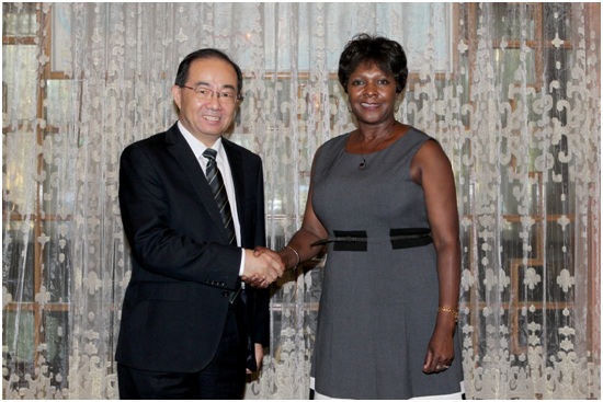 2015年9月6日,中國(guó)有色集團(tuán)總經(jīng)理、黨委書記張克利到贊比亞駐華大使館拜會(huì)贊比亞商業(yè)貿(mào)易和工業(yè)部部長(zhǎng)姆瓦納?卡特韋女士。