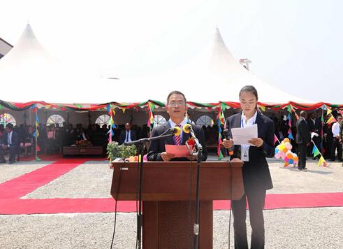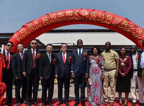 倫古總統(tǒng)和王彤宙董事長(zhǎng)為投產(chǎn)紀(jì)念牌揭牌