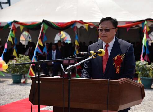 中國(guó)駐贊比亞大使李傑在儀式上致辭
