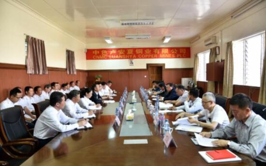 贊比亞當?shù)貢r間 2018 年 8 月 21 日,公司控股集團董事長、黨委書記、總經(jīng)理王彤宙一行來到企中色盧安夏調(diào)研??毓杉瘓F總經(jīng)理助理王小衛(wèi),公司董事會主席陶星虎、總裁張麟和副總裁兼中色盧安夏總經(jīng)理王春來等參加了調(diào)研。
